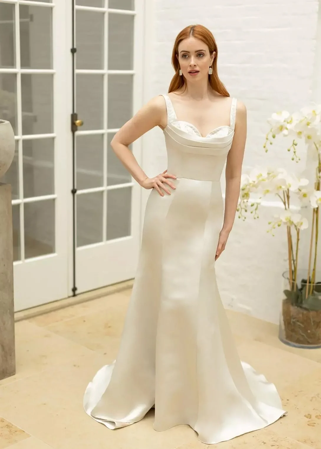 Vintage-inspired gowns celebrate the elegance of bygone eras, perfect for brides who treasure heritage and nostalgia. A tea-length or column dress with a high neckline and cap sleeves exudes a timeless yet distinctive elegance. Fabrics like delicate lace or satin complete the look, echoing the refinement of decades past while remaining fresh and stylish today.