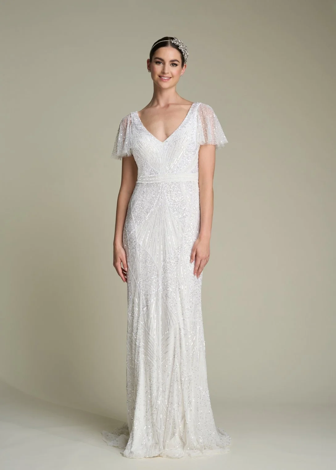 For brides who gravitate toward lightness and ethereal charm, whimsical gowns embrace airy fabrics like chiffon or organza. Flutter sleeves add a romantic, carefree energy, while scoop or bateau necklines offer understated elegance. Intricate ethereal embroidery ties it all together, evoking a gown spun from poetry and daydreams.